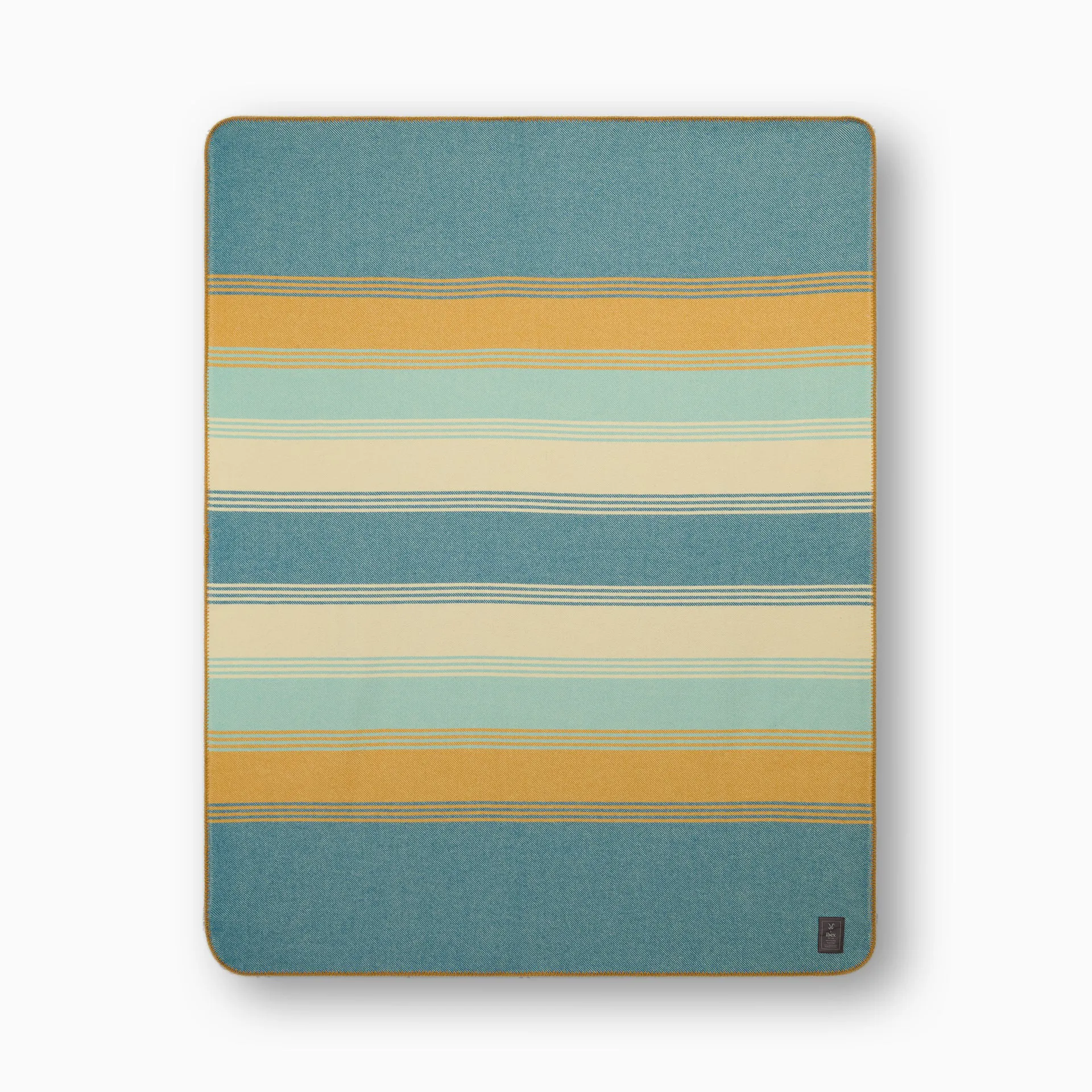 The blanket features a decorative blanket stitch along its perimeter, adding a refined finish. It ships in a 100% cotton, moth-proof storage bag.