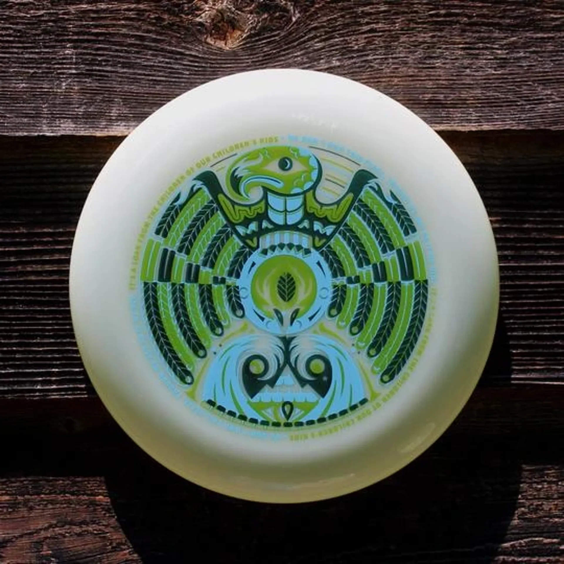 In the past couple years here at funn & frolic, we have started working with renowned poster artists from all around the country to do some of our frisbee designs. This is an 11inch diameter 175gm glow disc perfect for a day in the park or a competitive ultimate game.