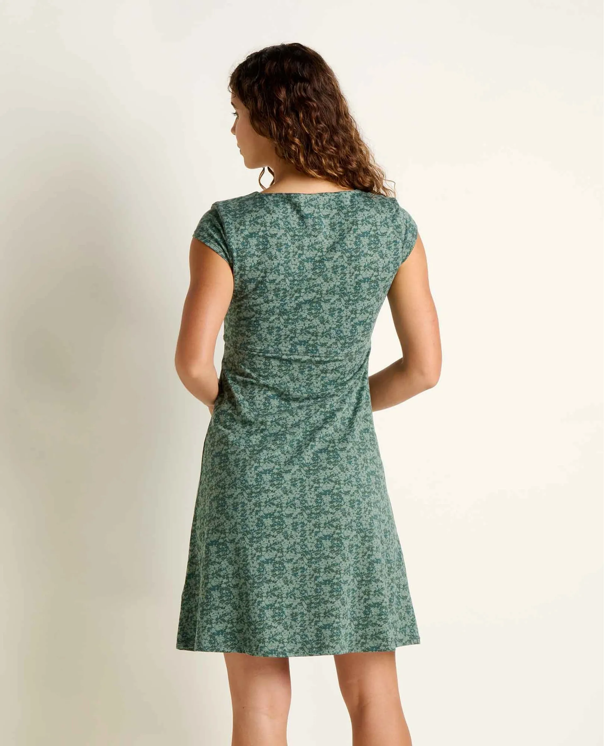 Cap sleeves compliment a silhouette that flatters everybody and a double-layer bodice provides a little extra coverage. This any-day warrior is at the ready. Toad & Co.'s Rosemarie Dress features an A-line silhouette with a v-neck and hits above the knee with a 94cm (37") length. The feel is soft, breathable eco-friendly organic cotton and TENCEL™ Lyocell slub with a bit of stretch for added comfort.
