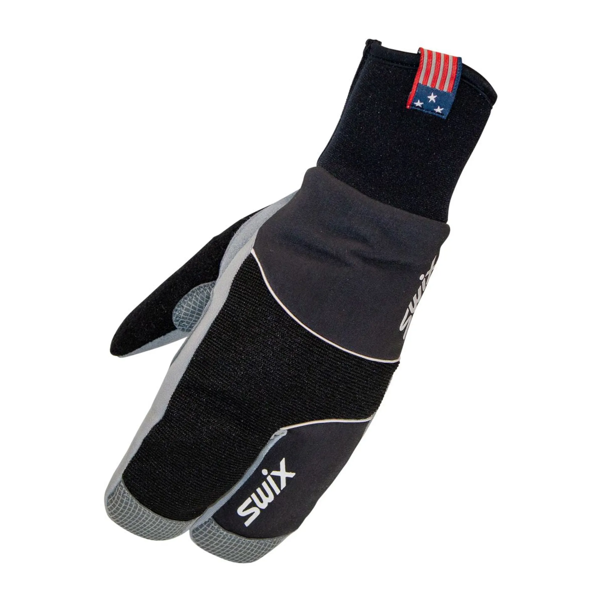 The Swix Star XC 3.0 split mitt is one of the most popular models. These three-finger gloves are more flexible than a mitten, and such lobster-style mittens are ideal for cold-weather aerobic activities such as cross-country skiing, winter running, and fatbiking, as they will keep your fingers warm without overheating. The upper of the Star XC 3.0 is made of 4-way stretch lycra and lycra finger walls. The palm is synthetic leather with reinforced pads on the side and thumb for durability and protection while providing a good grip. These cross-country split mittens feature Swix's eXClusive Combi Cuff with contoured neoprene on the upper and soft acrylic on the palm side. They are good for winter activities when it gets cold.