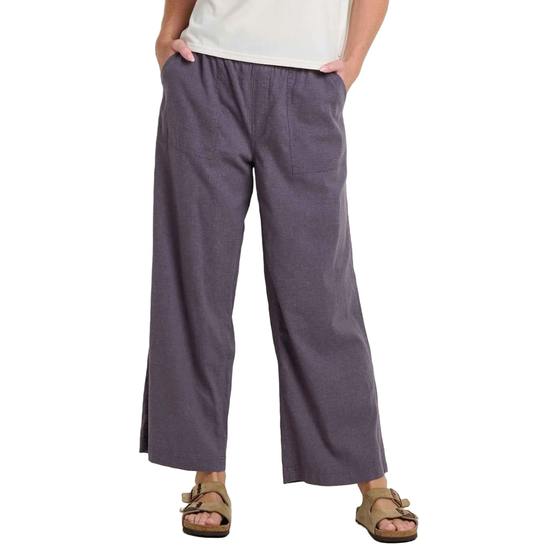 A wide-leg pull-on pant with a linen-like feel.
