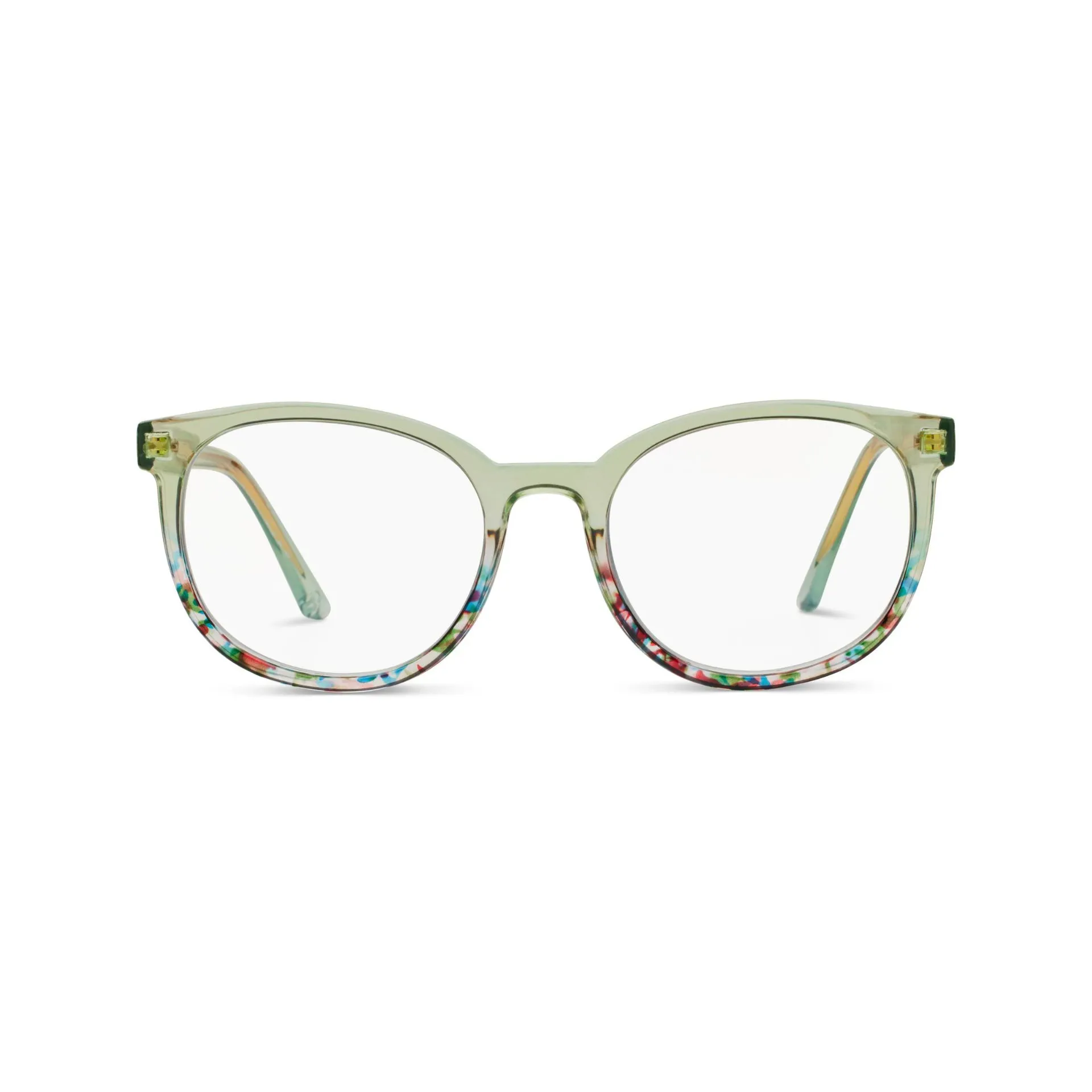 Classic round frames and wire core temples set the stage for fun crystal color options and expressive multicolor dips. Show up in these frames and everyone will know you are calling the shots.