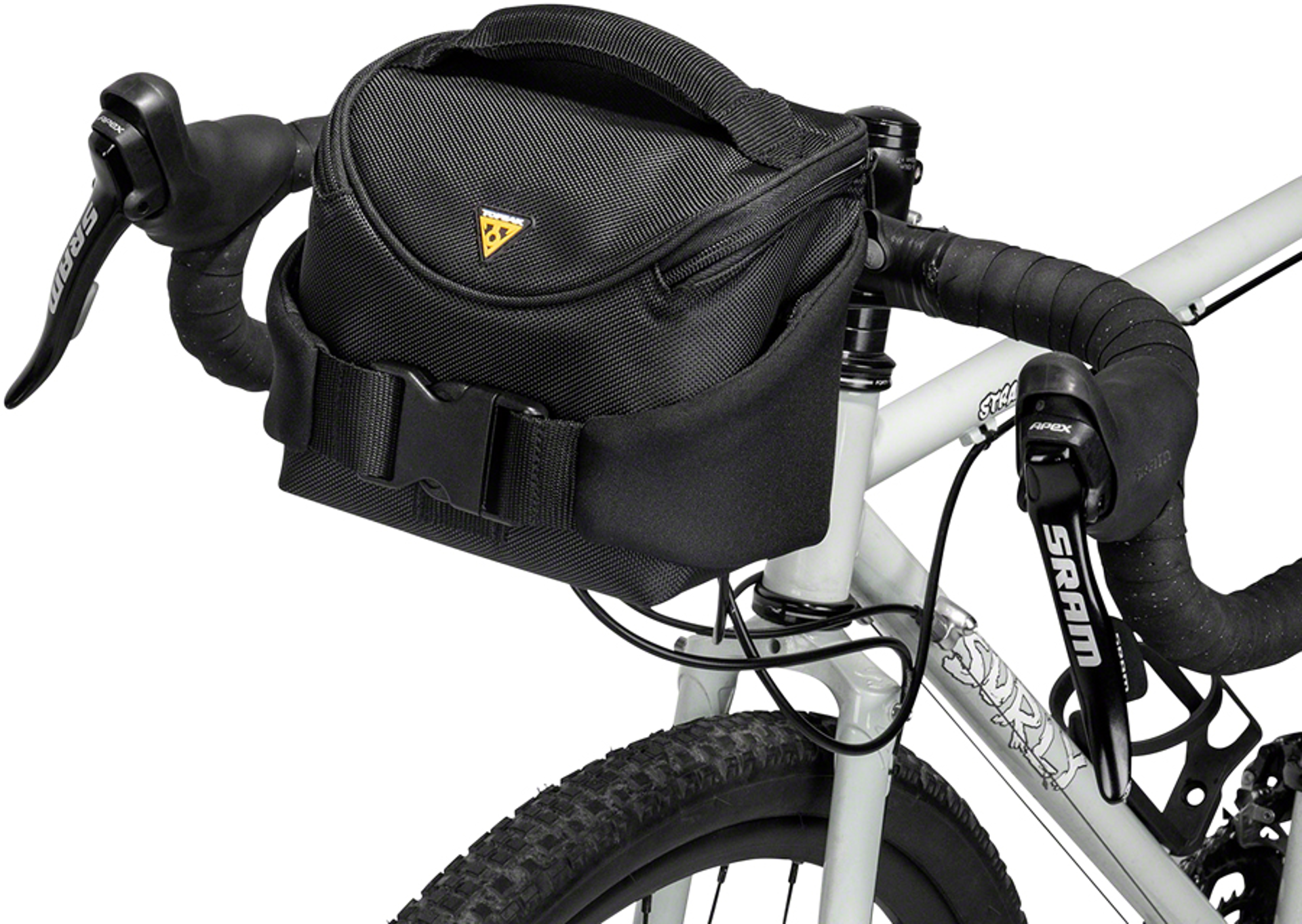 This compact bag utilizes a positive-locking, quick-release Fixer 8 handlebar bracket for secure mounting. For off-bike adventures, the bag includes a buckled strap allowing you to wear it around your waist as a fanny pack. It also features side straps designed for carrying a Topeak cell phone bag.