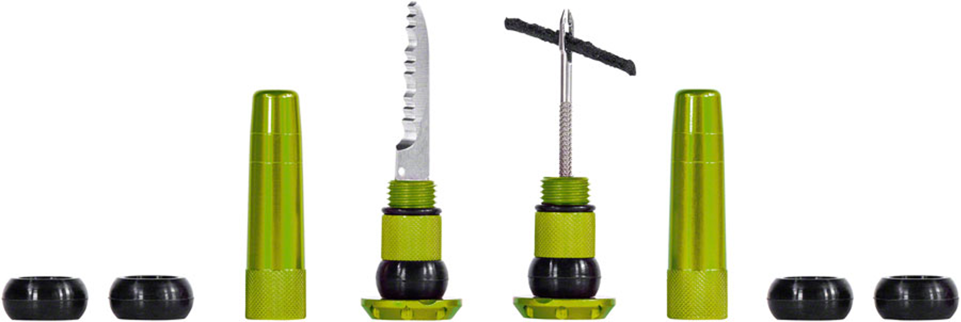 The expanding silica plugs cover most MTB, road, and gravel handlebar sizes and the premium CNC machined aluminum bar ends are durable to match your ride. Each lightweight and durable set contains everything you need to get back riding when you're stuck battling a hole that's just not sealing. These are designed to plug and repair multiple holes that won't seal with just sealant and are compatible with all tubeless MTB, gravel, and road tires.