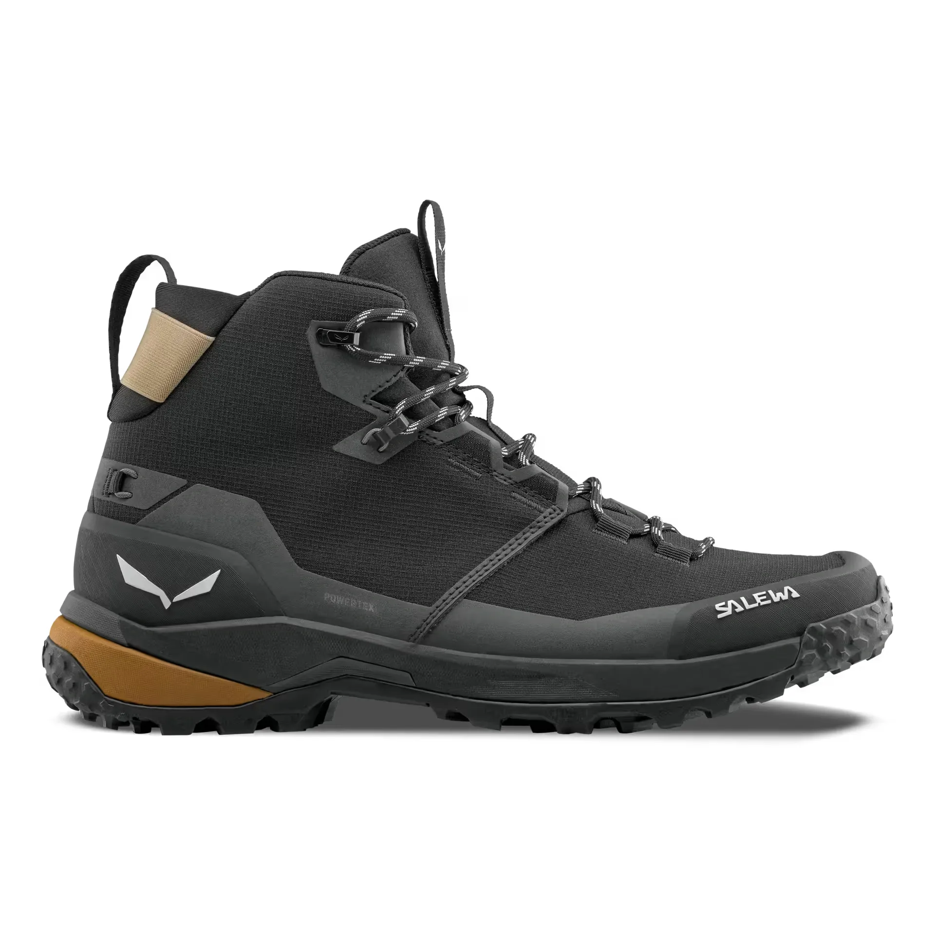 The Puez 2 Mid Powertex has a Pomoca™ Alpine Trekker outsole for grip and traction in technical terrain. At the heart of its construction built into the insole, the new Salewa Edging Plate II, a special thermoplastic frame that runs the entire length of the boot offers a combination of enhanced flex and rebound for long-lasting hiking comfort with specific levels of stiffness and flex at the forefoot, and heel for targeted stiffness, plus increased stability. In addition, the proven Salewa 3F System with Kevlar® cables ensures a supportive fit at the ankle and wrapping midfoot stability. This is further enhanced by the climbing lacing that runs right down to the toe.