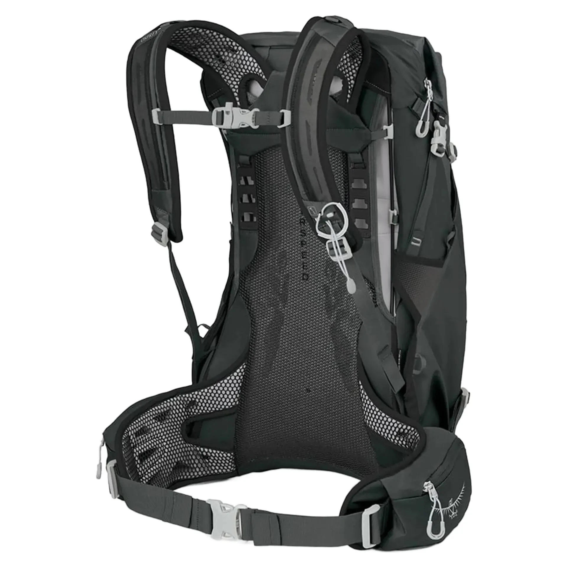 For quick-access essentials and drying raincoats, non-waterproof pocketing on the pack’s exterior, including bottle pockets, a large backpanel stash pocket and an external hydration sleeve, are made of breathable, water-shedding materials that’ll dry quick.