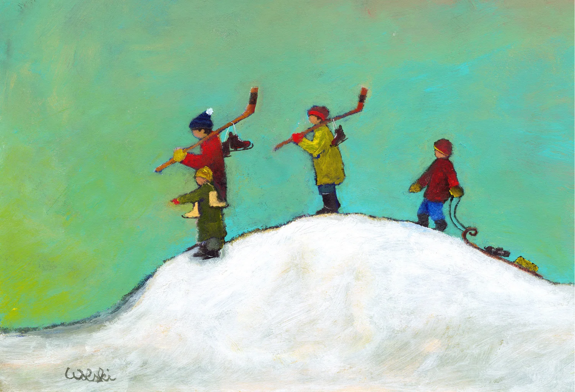 Wolski’s Ukrainian/Polish heritage adds a subtle flavor of the old world to his images. Combine this with simple moments of today’s world. Overall his style is simple yet provocative. “In my paintings I want to say the most in the simplest gesture or color. I love when someone looks at my paintings and is drawn into their own memories. Someone told me once that my work made them want to go home and paint. I think that was one of my greatest compliments.”