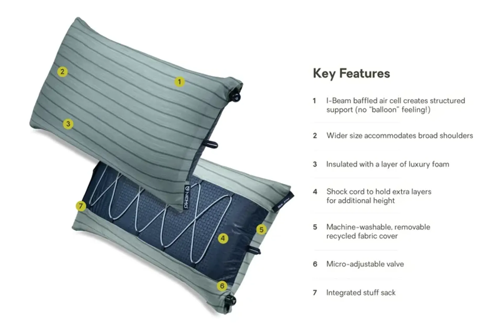 This award-winning pillow design offers next-level comfort with a built-in feature that allows users to increase its height with no weight penalty.