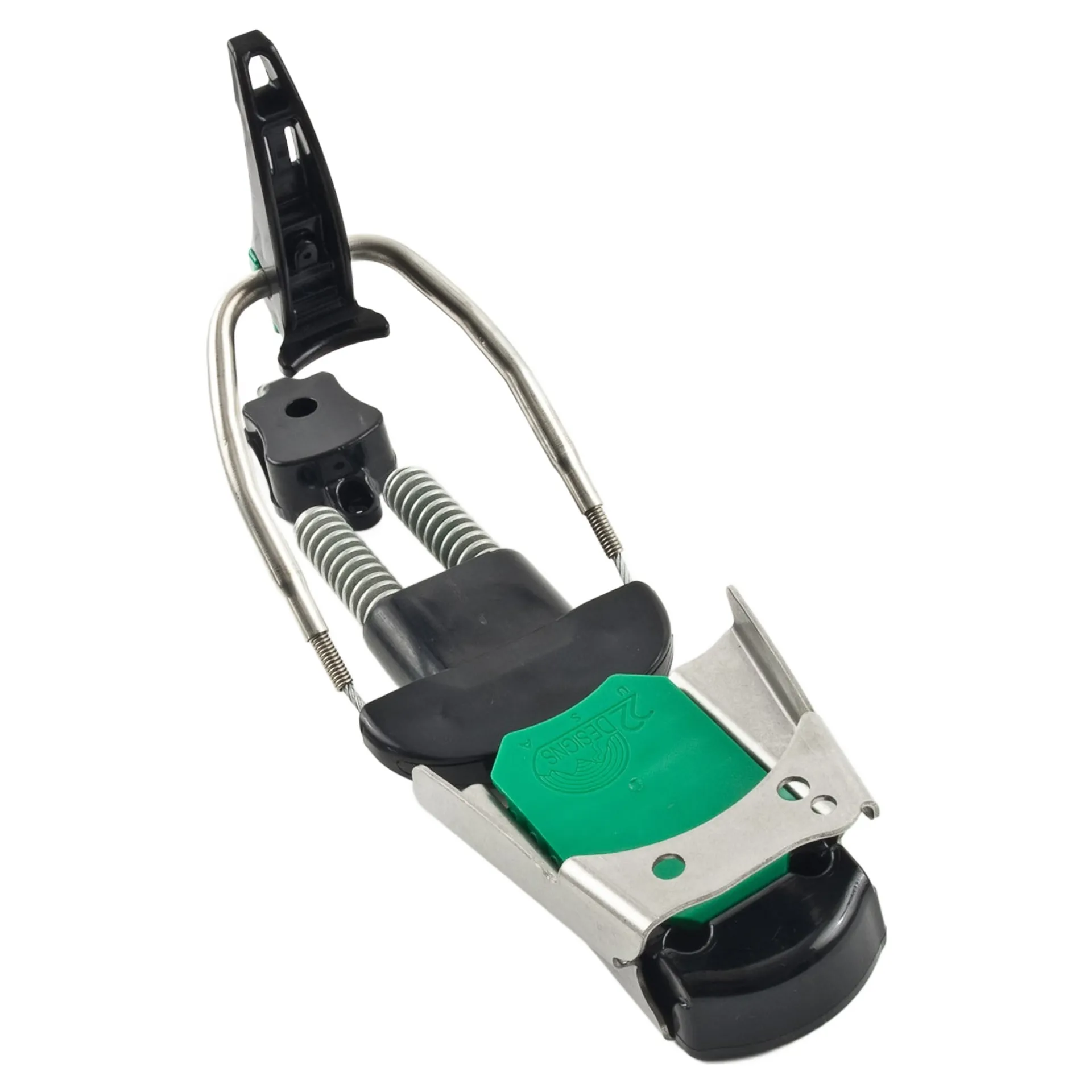 This fully customized telemark binding features three cable guide positions that allow you to adjust the binding from neutral to active while the underfoot cable routing enhances your boots bellow flex — no more tip-toeing. These include an ultra-durable stainless steel toe piece with an unbreakable 907kg (2,000 lbs.) test braided cable mated to dual chrome springs giving more than 5cm (2") of travel. Large fits 75mm telemark boots size 26 MP and up at 1.43kg (3.15 lbs.) per pair. These are made in the USA and include a two-year manufacturer's warranty against defects from the date of purchase.